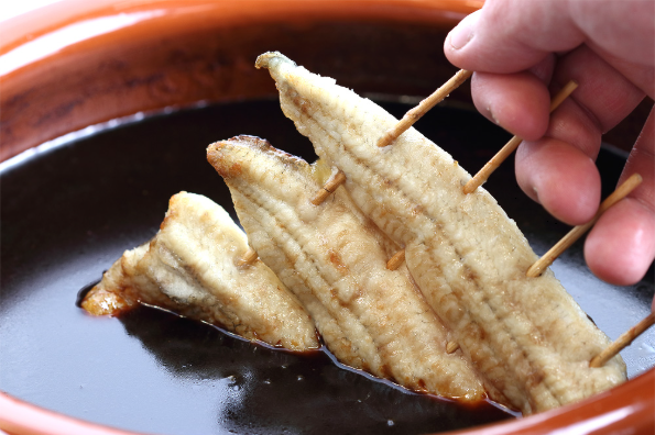 当店自慢のタレは、大正12年創業の老舗醤油醸造所との共同開発にて、高温で焼き上げた鰻の頭や骨をじっくり煮込んで豊かなコクを加えました。あっさりベースで鰻との相性抜群です。
